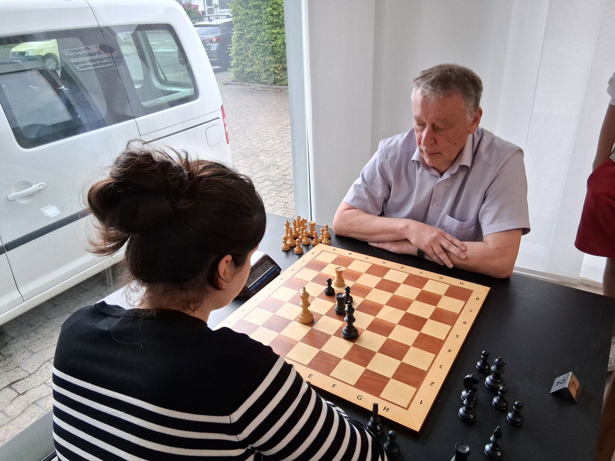 Helena Neumann im Duell mit dem Zweitplatzierten Dr. Ulrich Tamm (Enger-Spenge; auch Schach-Historiker)